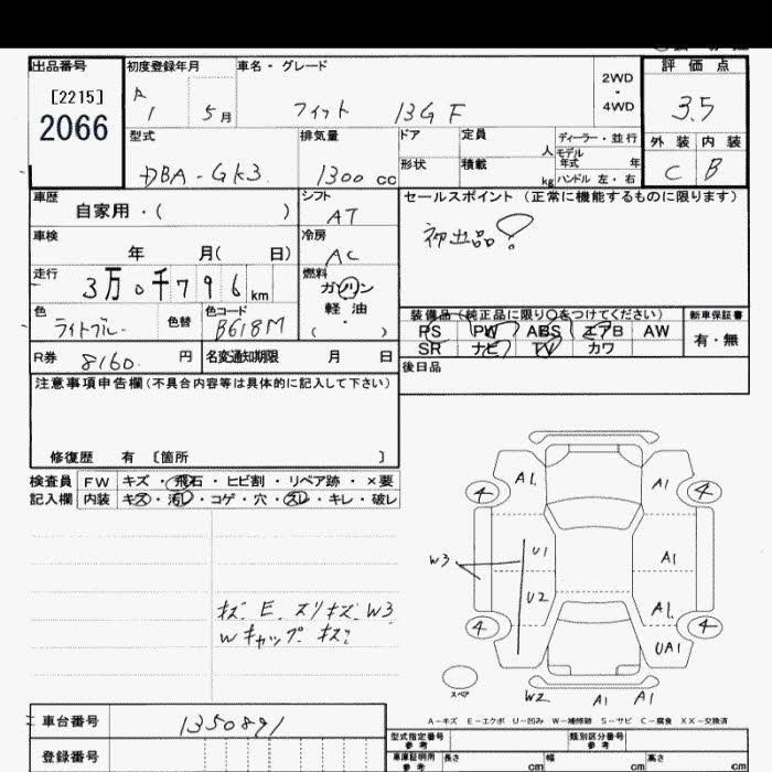 | 13G F | DBA-GK3 | L13B | FF | 5MT | 1317cc | 100ps(73kW)/6000rpm | AИ-92 | 1 455 300 | |