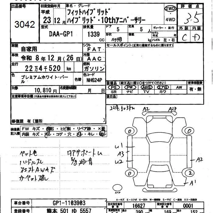 | G SMART SELECTION | DBA-GE7 | L13A | Full-time 4WD | 5AT | 1339cc | 100ps(73kW)/6000rpm | AИ-92 | 1 525 600 | |