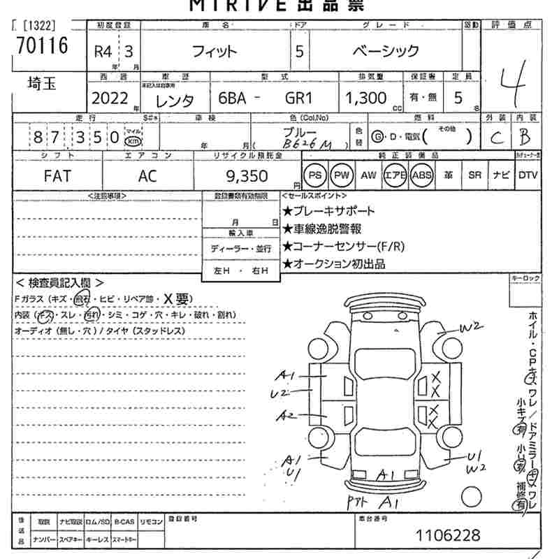 Статус выставлен на аукцион Лот 70116 Аукцион MIRIVE Saitama Дата аукциона 18.03.2026