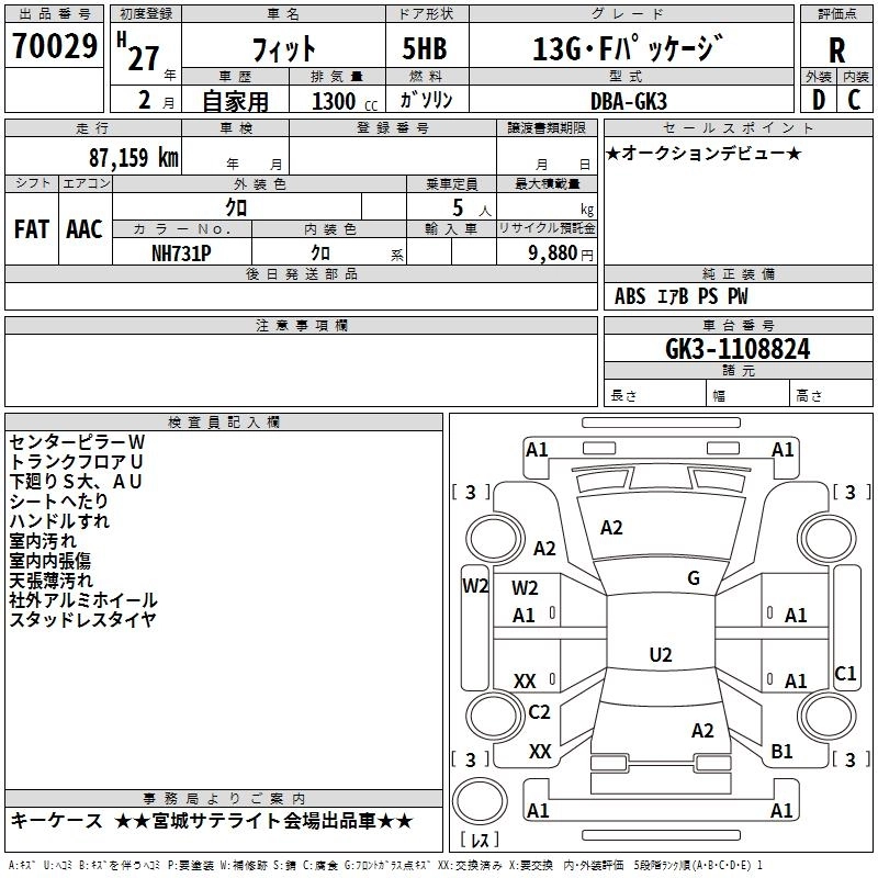 | 13G F PACKAGE | DBA-GK3 | L13B | FF | CVT | 1317cc | 100ps(73kW)/6000rpm | AИ-92 | 1 425 000 | |
