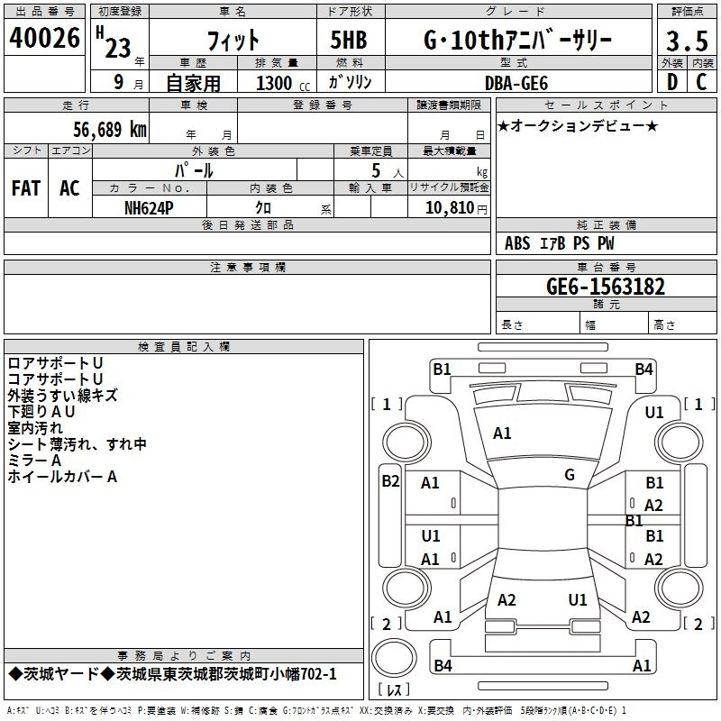 G DBA-GE6 L13A FF 5MT 1339cc 100ps(73kW)/6000rpm AИ-92 1 230 000