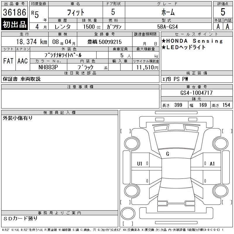 Статус выставлен на аукцион Лот 36186 Аукцион CAA Chubu Дата аукциона 18.03.2026