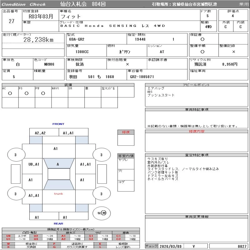 Статус выставлен на аукцион Лот 27 Аукцион ORIX Sendai Дата аукциона 17.03.2026