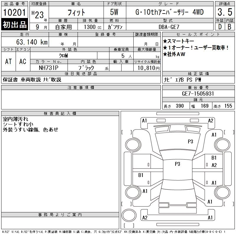 | G 10TH ANNIVERSARY II | DBA-GE6 | L13A | FF | CVT | 1339cc | 99ps(73kW)/6000rpm | AИ-92 | 1 370 000 |