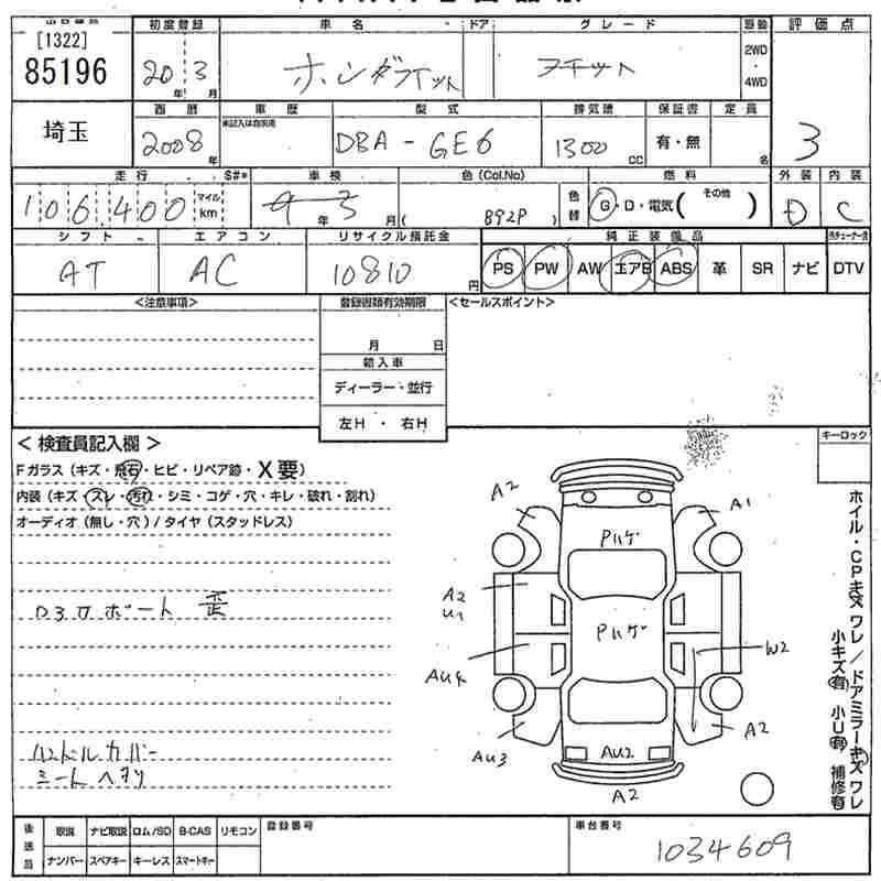 | G HIGHWAY EDITION | DBA-GE6 | L13A | FF | CVT | 1339cc | 100ps(73kW)/6000rpm | AИ-92 | 1 290 000 |