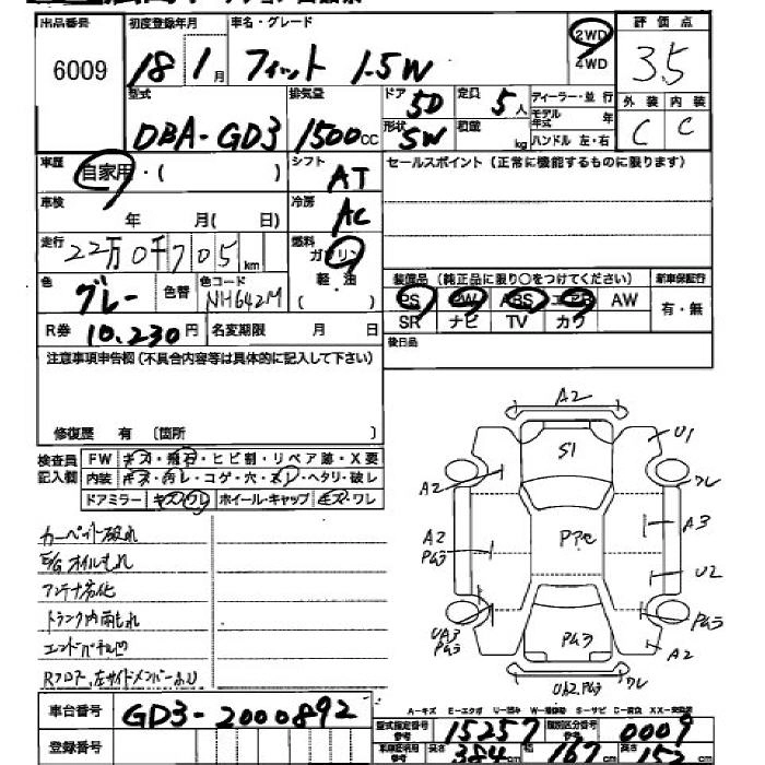 1.5W DBA-GD3 L15A FF 5MT 1496cc 110ps(81kW)/5800rpm AИ-92 1 501 500