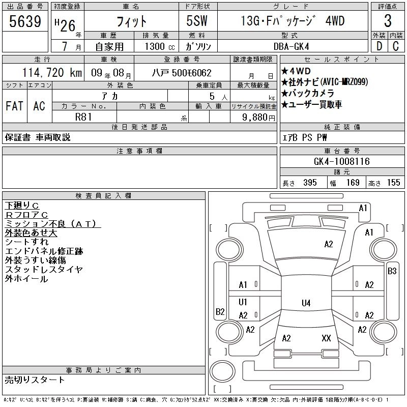 | 13G F PACKAGE | DBA-GK3 | L13B | FF | CVT | 1317cc | 100ps(73kW)/6000rpm | AИ-92 | 1 420 000 | |