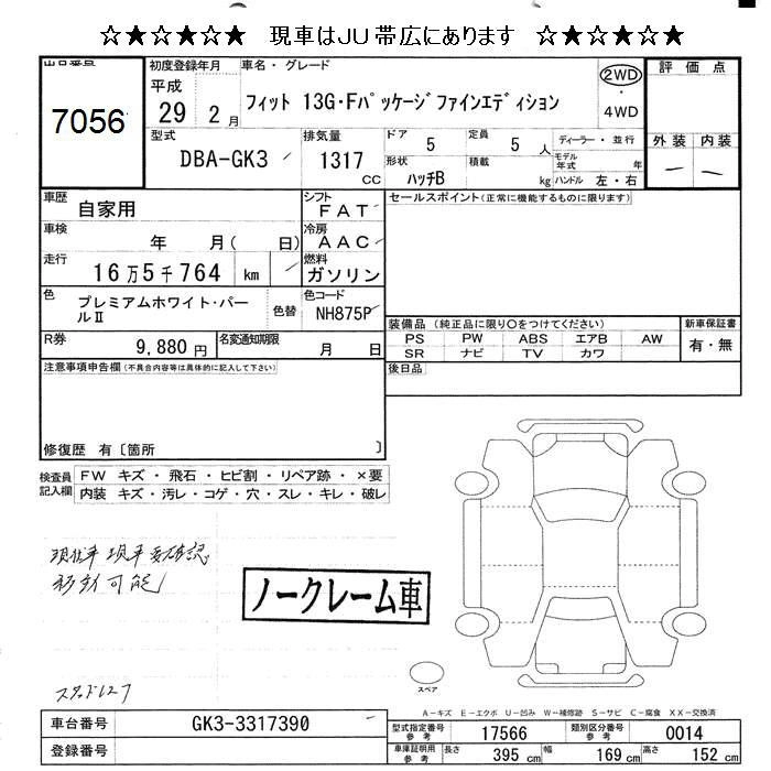 | 13G F | DBA-GK3 | L13B | FF | 5MT | 1317cc | 100ps(73kW)/6000rpm | AИ-92 | 1 428 840 | |