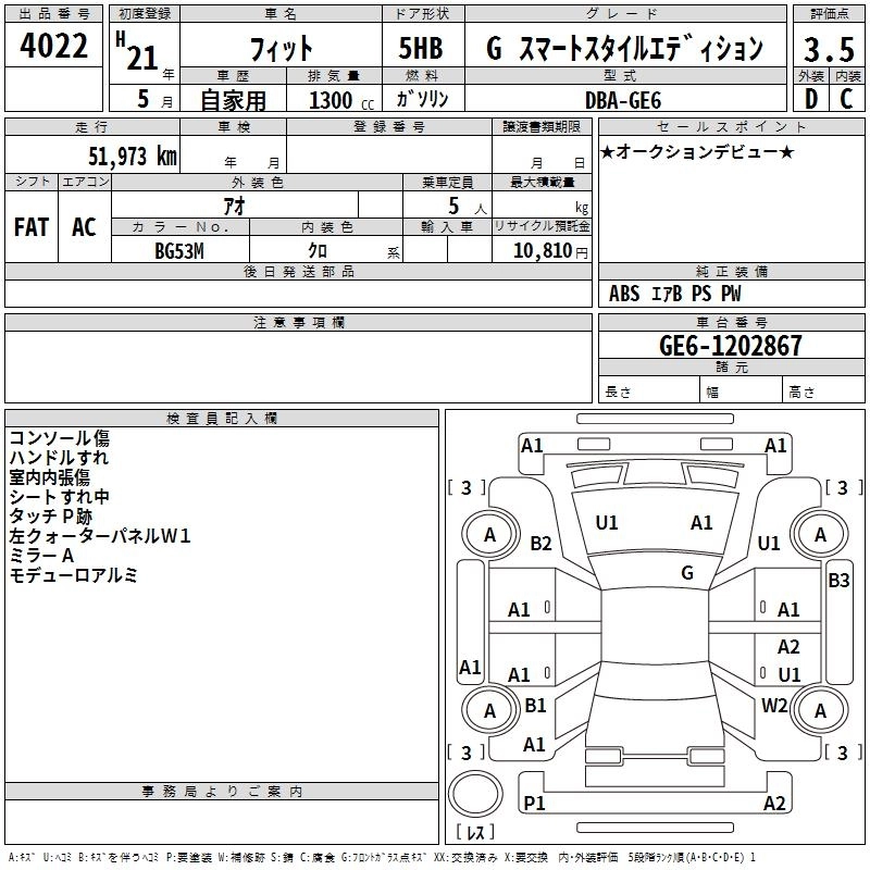 | G SMART SELECTION | DBA-GE6 | L13A | FF | 5MT | 1339cc | 100ps(73kW)/6000rpm | AИ-92 | 1 320 000 | |