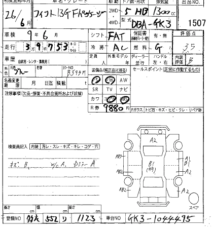 | 13G F PACKAGE | DBA-GK3 | L13B | FF | 5MT | 1317cc | 100ps(73kW)/6000rpm | AИ-92 | 1 420 000 | |