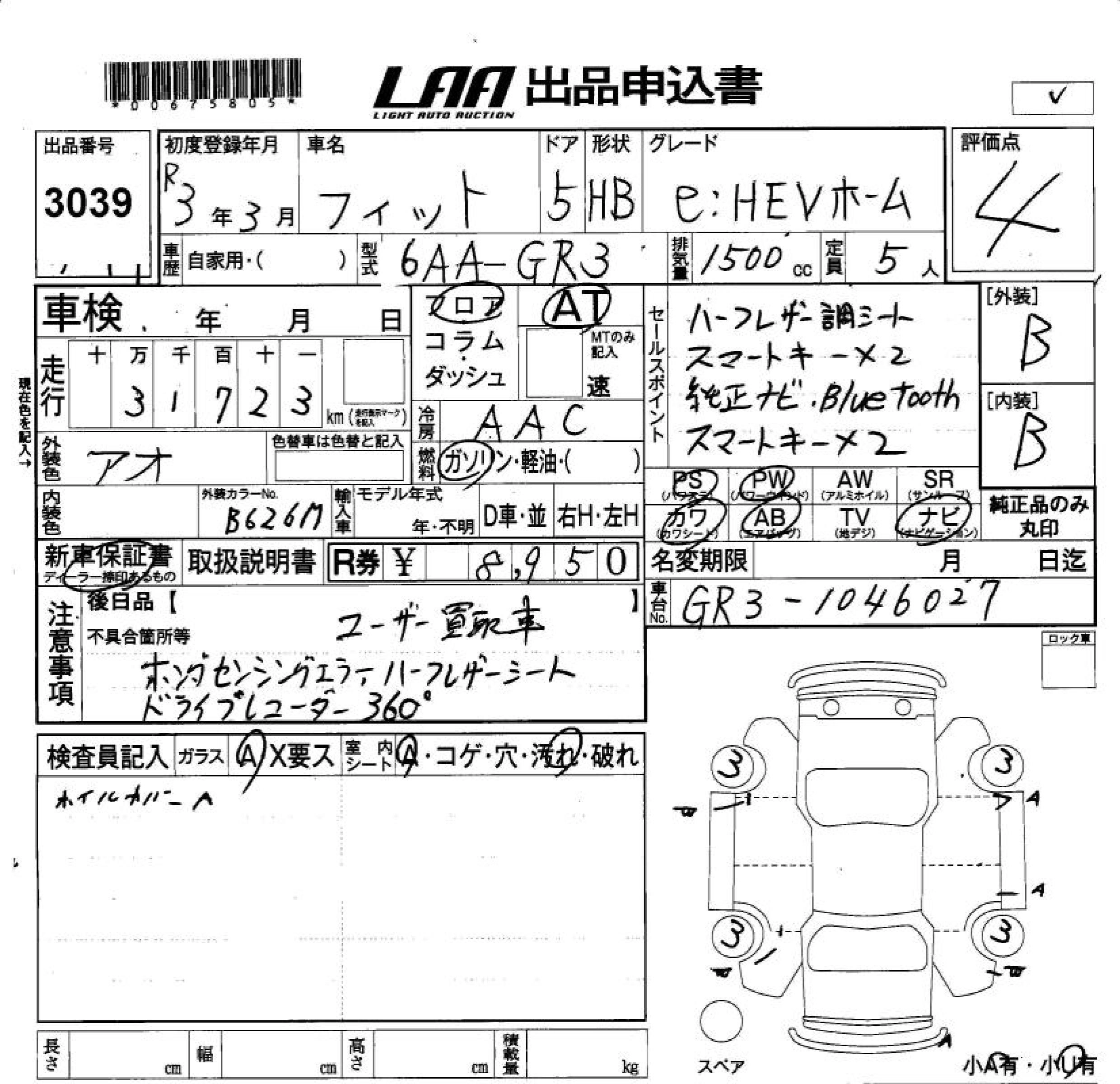 Статус выставлен на аукцион Лот 3039 Аукцион LAA Okayama Дата аукциона 20.03.2026