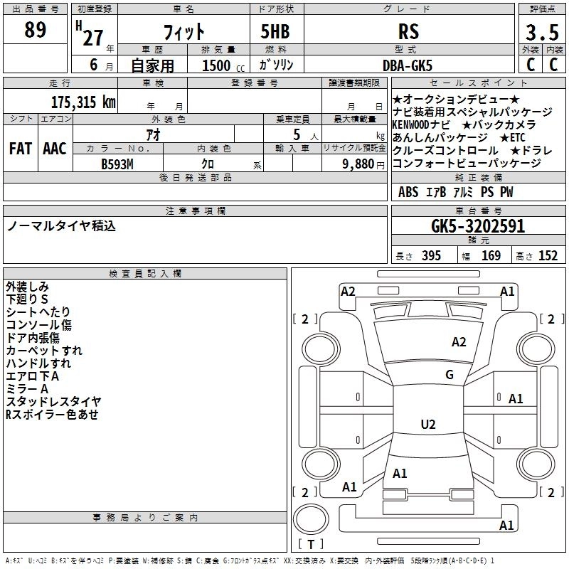 | RS | DBA-GK5 | L15B | FF | 6MT | 1496cc | 132ps(97kW)/6600rpm | AИ-92 | 1 926 000 | |