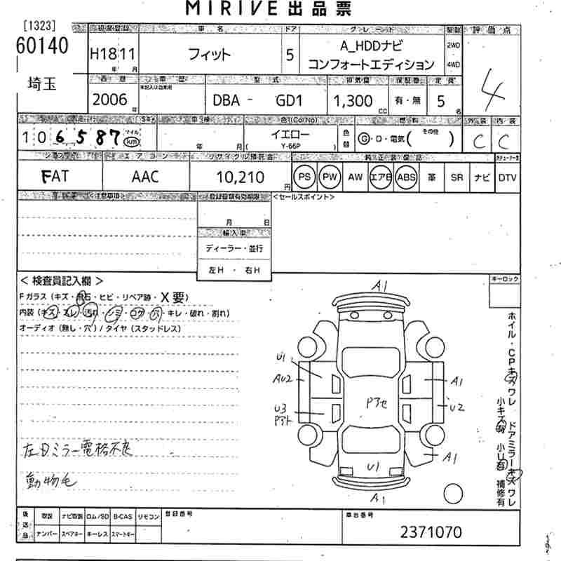 | 1.3A | DBA-GD1 | L13A | FF | CVT | 1339cc | 86ps(63kW)/5700rpm | AИ-92 | 1 186 500 | |