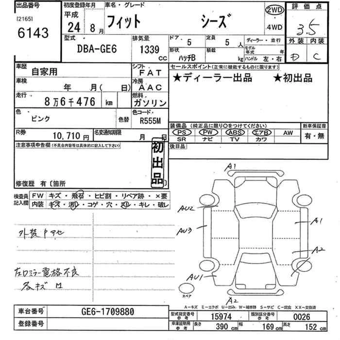 | 13G | DBA-GE6 | L13A | FF | CVT | 1339cc | 99ps(73kW)/6000rpm | AИ-92 | 1 230 000 | |