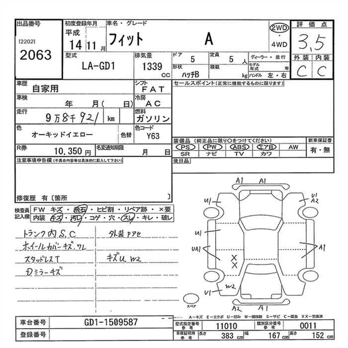 | A | LA-GD1 | L13A | FF | CVT | 1339cc | 86ps(63kW)/5700rpm | AИ-92 | 1 145 000 | |