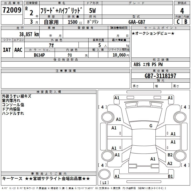 HONDA FREED + HYBRID 2020 г., лот № 72009