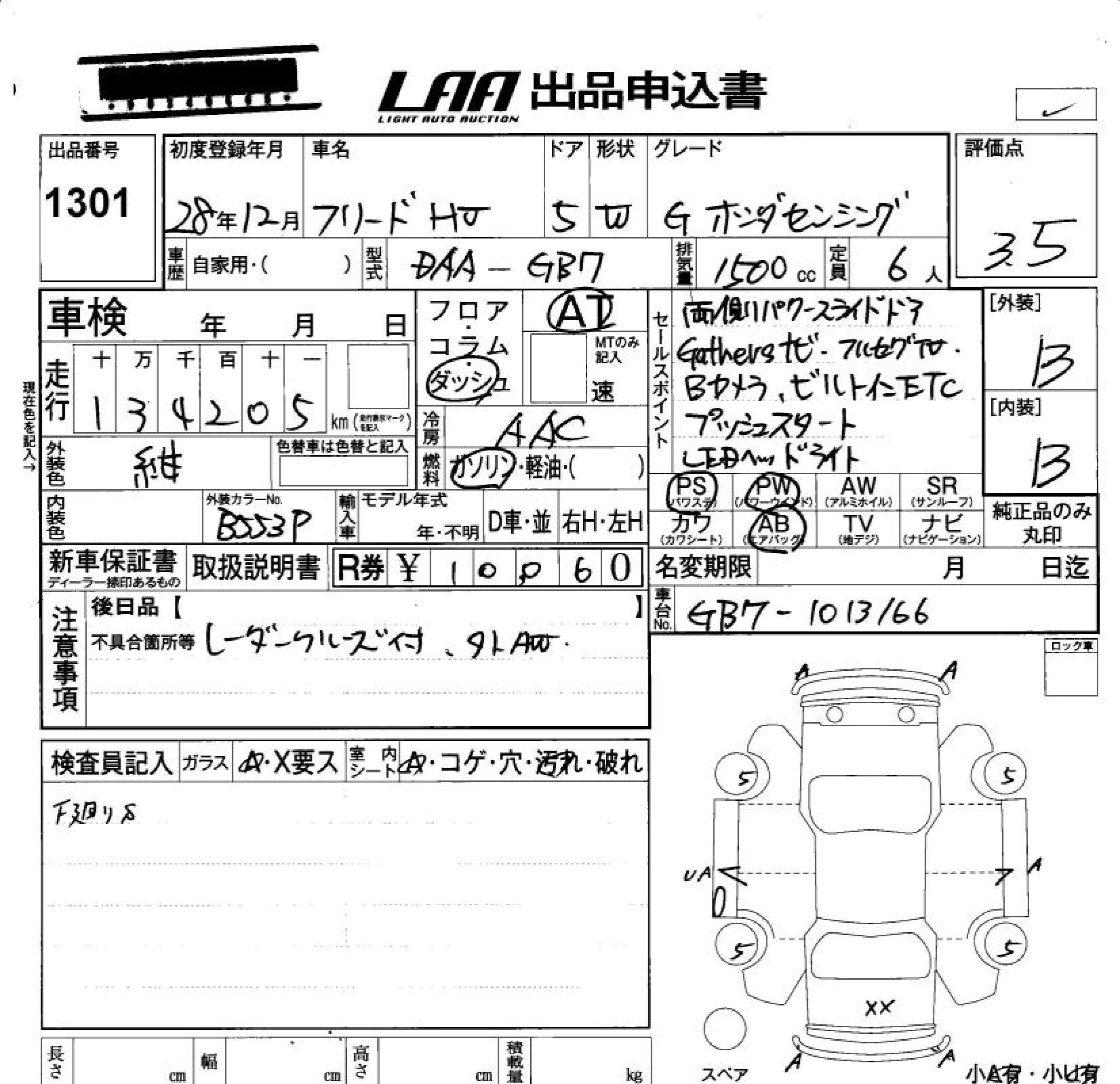 | HYBRID B | DAA-GB7 | LEB | FF | 7AT | 1496cc | 110ps(81kW)/6000rpm | AИ-92 | 2 256 000 |