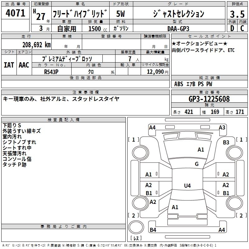 | HYBRID PREMIUM EDITION | DAA-GP3 | LEA | FF | CVT | 1496cc | 88ps(65kW)/5400rpm | AИ-92 | 2 372 400 | |