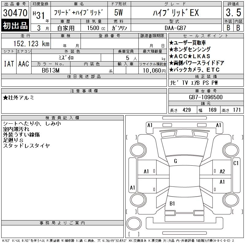 HONDA FREED + HYBRID 2019 г., лот № 30470