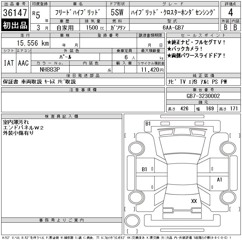 HONDA FREED HYBRID 2023 г., лот № 36147