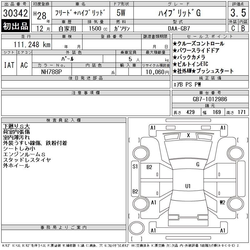 HONDA FREED + HYBRID 2016 г., лот № 30342