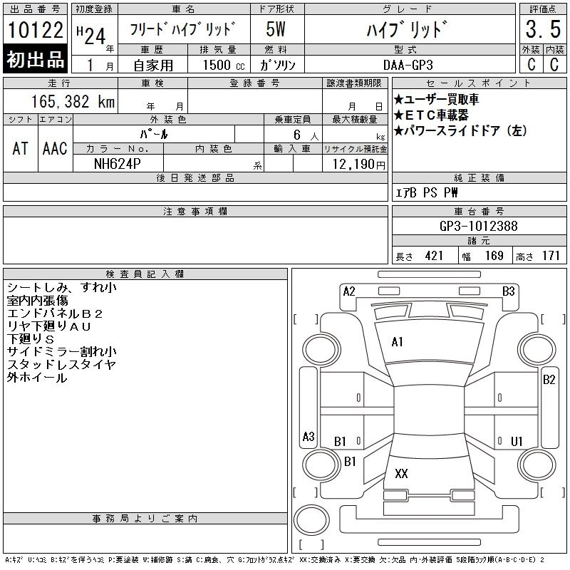 | JUST SELECTION | DAA-GP3 | LEA | FF | CVT | 1496cc | 88ps(65kW)/5400rpm | AИ-92 | 2 326 500 | |