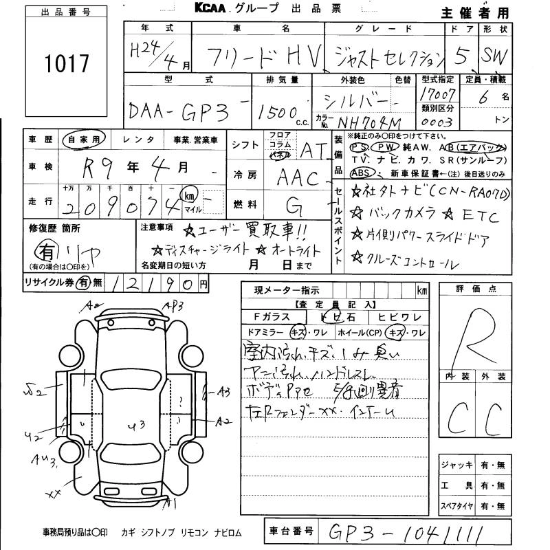 HONDA FREED HYBRID 2012 г., лот № 1017