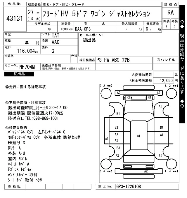 | HYBRID PREMIUM EDITION | DAA-GP3 | LEA | FF | CVT | 1496cc | 88ps(65kW)/5400rpm | AИ-92 | 2 372 400 | |