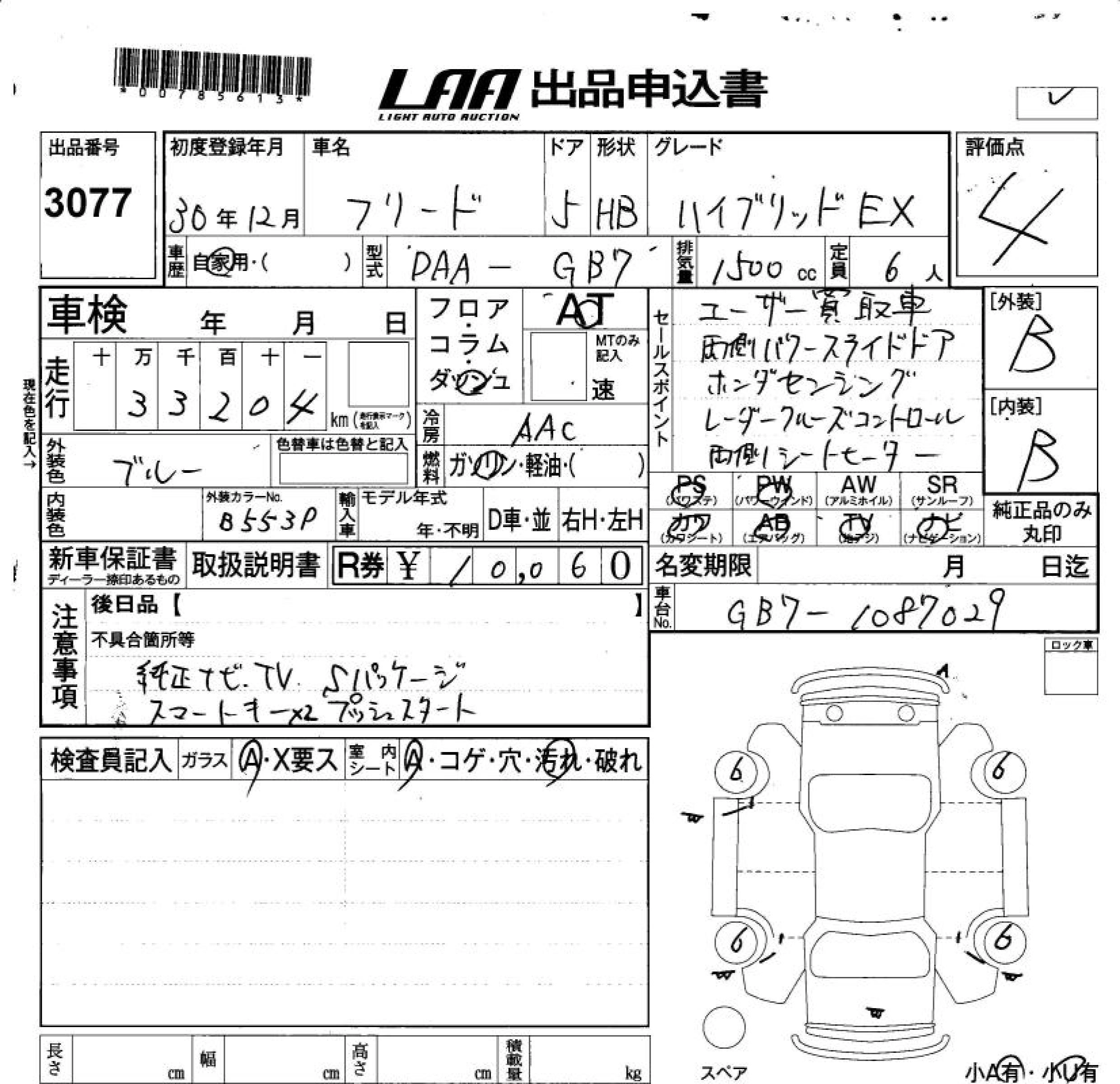 HONDA FREED HYBRID 2018 г., лот № 3077