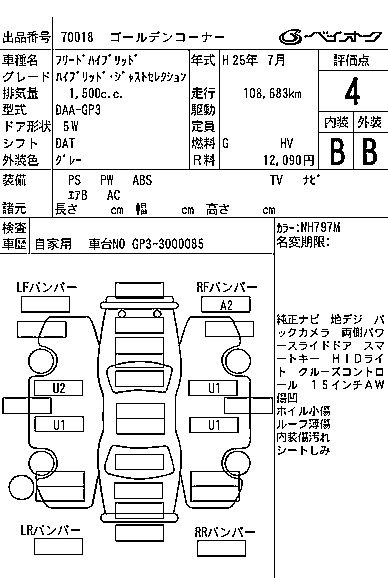 | JUST SELECTION+ | DAA-GP3 | LEA | FF | CVT | 1496cc | 88ps(65kW)/5400rpm | AИ-92 | 2 300 000 |