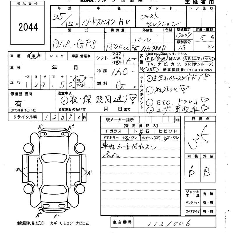| JUST SELECTION+ | DAA-GP3 | LEA | FF | CVT | 1496cc | 88ps(65kW)/5400rpm | AИ-92 | 2 300 000 |