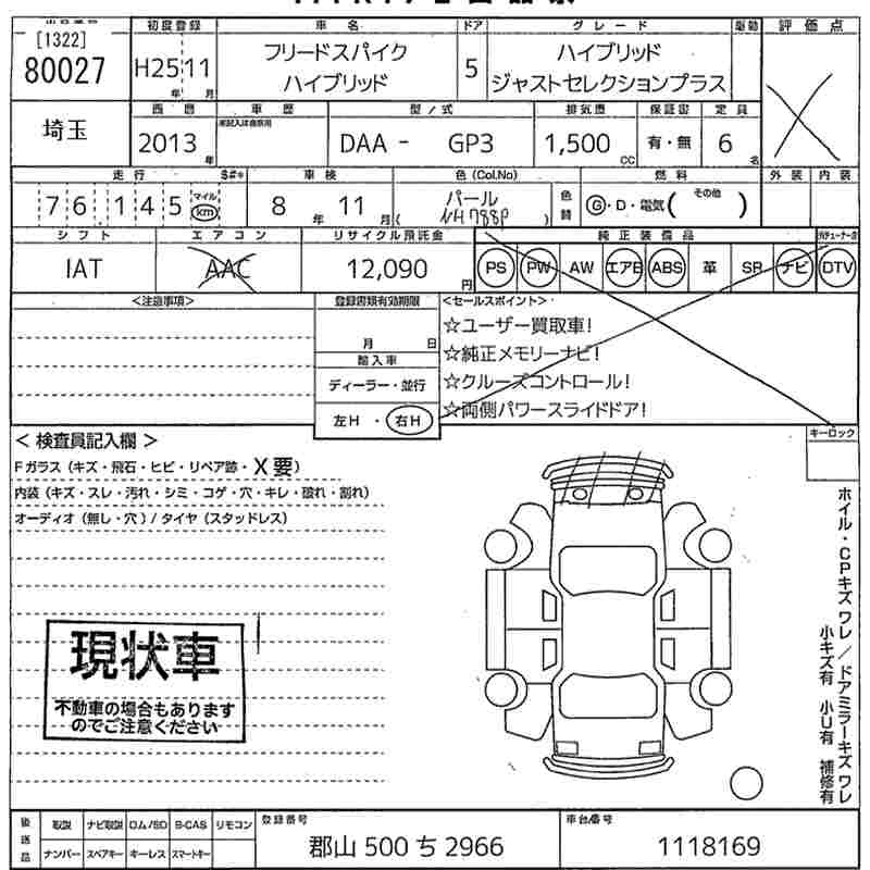 | JUST SELECTION+ | DAA-GP3 | LEA | FF | CVT | 1496cc | 88ps(65kW)/5400rpm | AИ-92 | 2 300 000 |