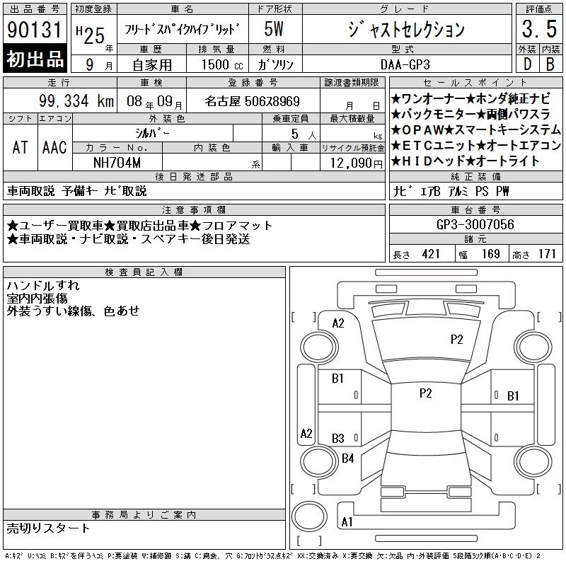 | JUST SELECTION+ | DAA-GP3 | LEA | FF | CVT | 1496cc | 88ps(65kW)/5400rpm | AИ-92 | 2 300 000 |