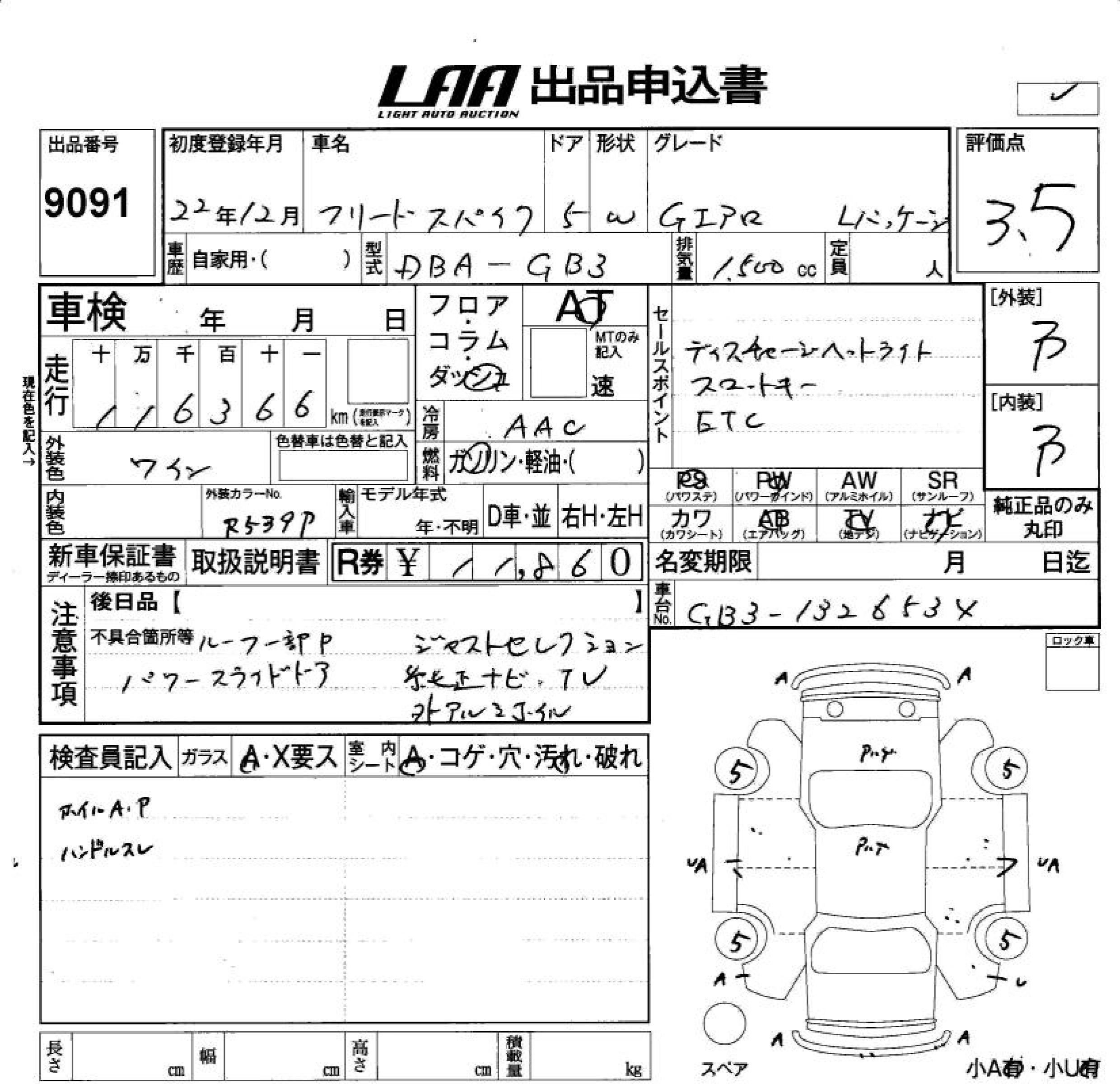 | GI AERO | DBA-GB3 | L15A | FF | CVT | 1496cc | 118ps(87kW)/6600rpm | AИ-92 | 2 468 000 | |