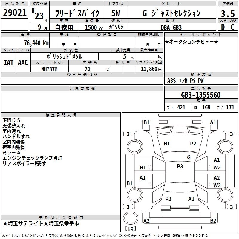 | G JUST SELECTION | DBA-GB3 | L15A | FF | CVT | 1496cc | 118ps(87kW)/6600rpm | AИ-92 | 1 850 000 | |
