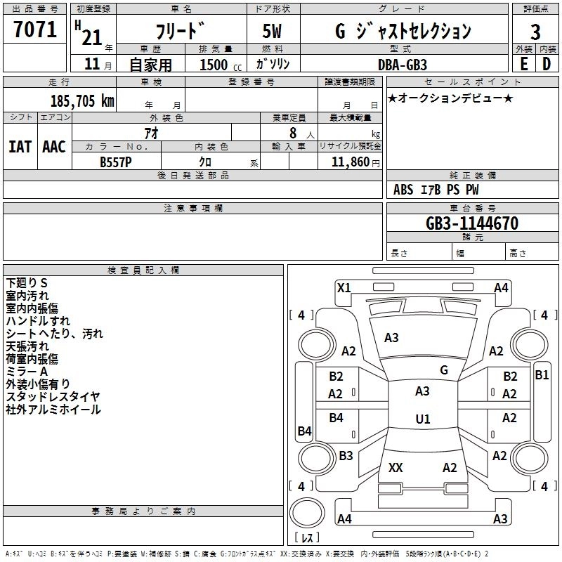 | G AERO JUST SELECTION | DBA-GB3 | L15A | FF | CVT | 1496cc | 118ps(87kW)/6600rpm | AИ-92 | 2 020 000 | |