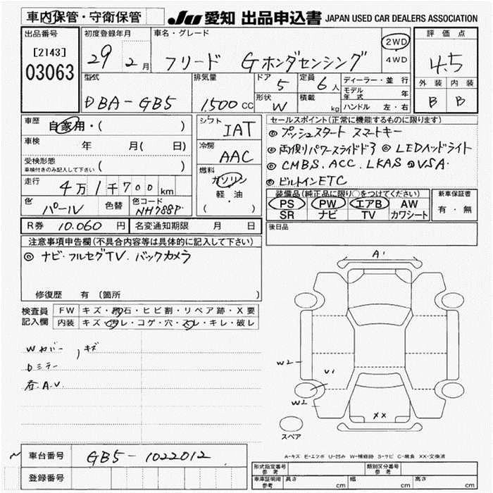 | G HONDA SENSING | DBA-GB5 | L15B | FF | CVT | 1496cc | 131ps(96kW)/6600rpm | AИ-92 | 2 100 000 | |