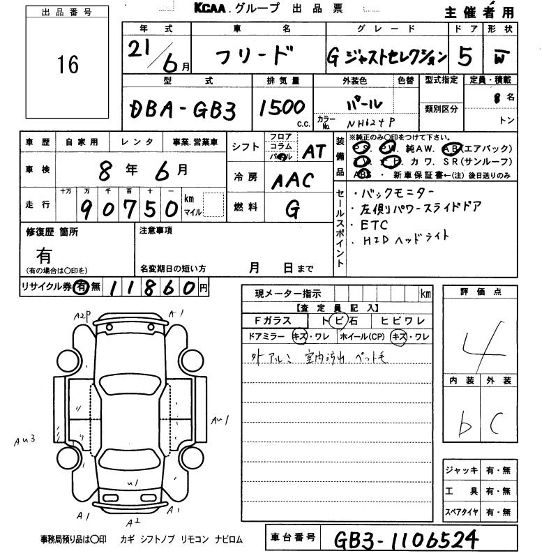 | GI AERO | DBA-GB3 | L15A | FF | CVT | 1496cc | 118ps(87kW)/6600rpm | AИ-92 | 2 266 000 | |