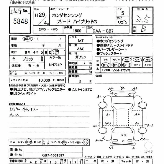 | G HONDA SENSING | DBA-GB5 | L15B | FF | CVT | 1496cc | 131ps(96kW)/6600rpm | AИ-92 | 2 100 000 | |