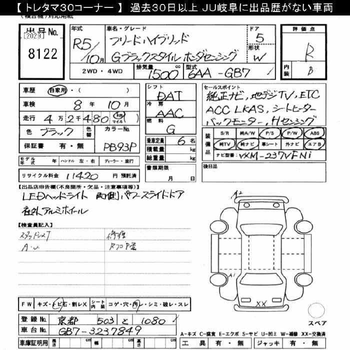 HONDA FREED 2023 г., лот № 8122