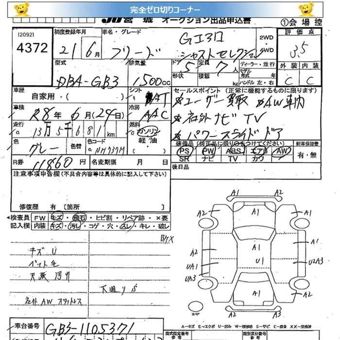 | GI AERO | DBA-GB3 | L15A | FF | CVT | 1496cc | 118ps(87kW)/6600rpm | AИ-92 | 2 266 000 | |