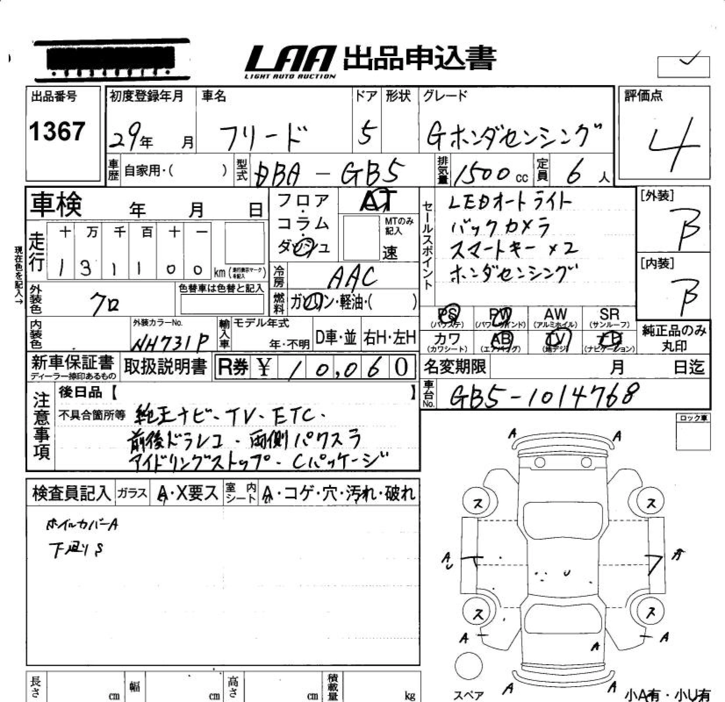 | G | DBA-GB5 | L15B | FF | CVT | 1496cc | 131ps(96kW)/6600rpm | AИ-92 | 1 980 000 | |