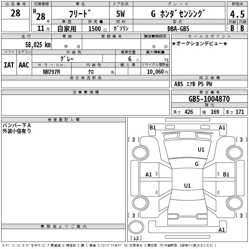 | G HONDA SENSING | DBA-GB5 | L15B | FF | CVT | 1496cc | 131ps(96kW)/6600rpm | AИ-92 | 2 100 000 | |