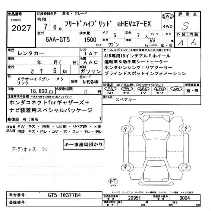 HONDA FREED 2025 г., лот № 2027