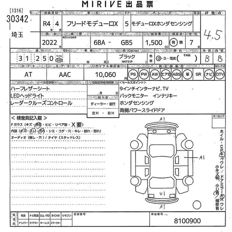 Статус выставлен на аукцион Лот 30342 Аукцион MIRIVE Saitama Дата аукциона 04.02.2026