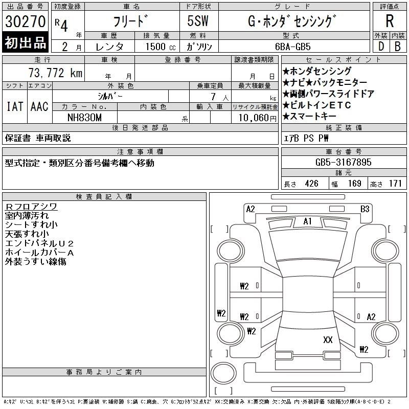 HONDA FREED 2022 г., лот № 30270