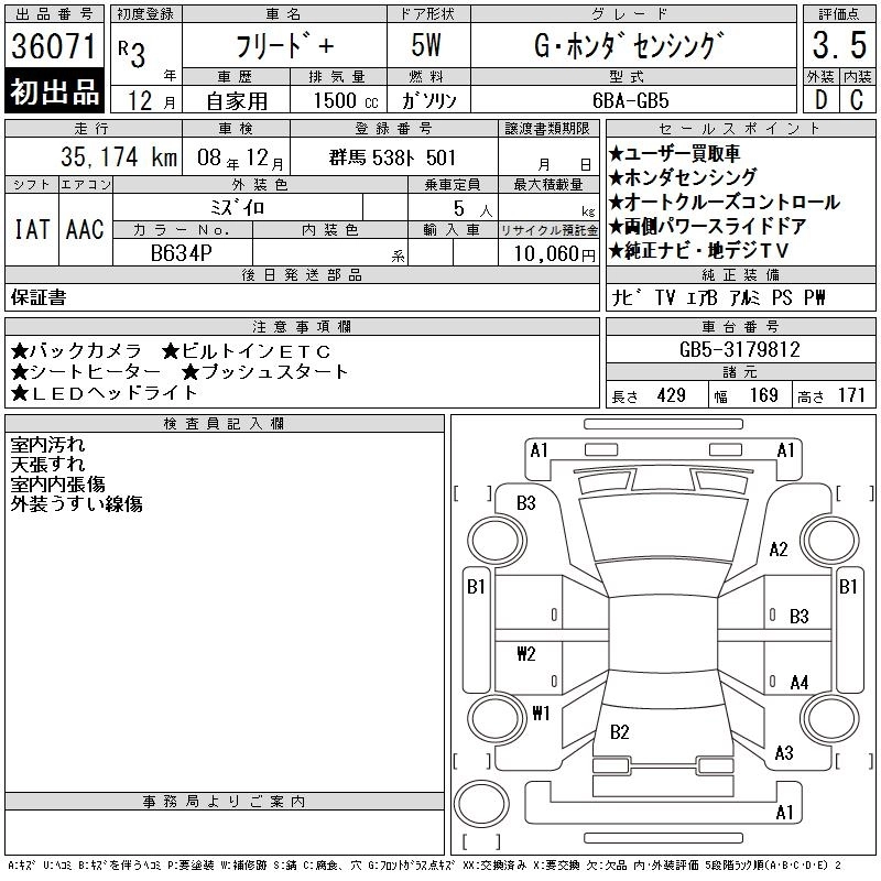 HONDA FREED+ 2021 г., лот № 36071