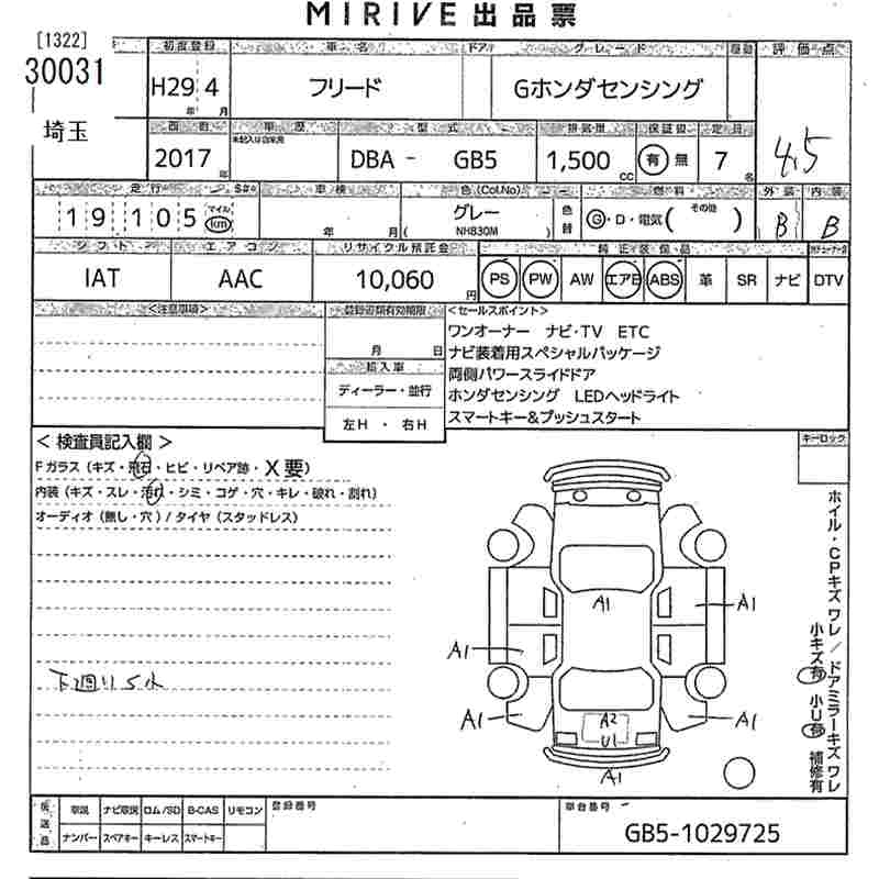 | G HONDA SENSING | DBA-GB5 | L15B | FF | CVT | 1496cc | 131ps(96kW)/6600rpm | AИ-92 | 2 100 000 | |