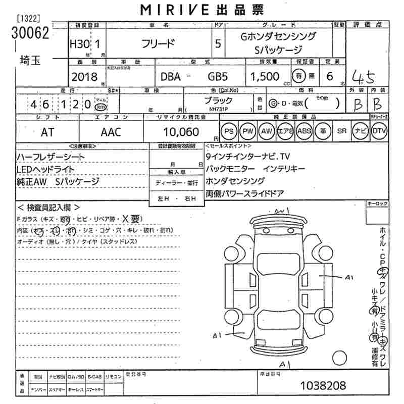 HONDA FREED 2018 г., лот № 30062