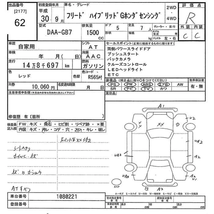 HONDA FREED 2018 г., лот № 62